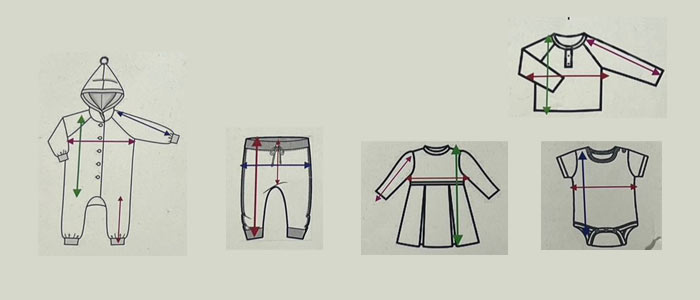 | سایز | پهنا | قد آستین | قد کت | قد پیراهن | قد کامل شلوار | کمر تا فاق | فاق تا مچ پا | سرشانه تا فاق |